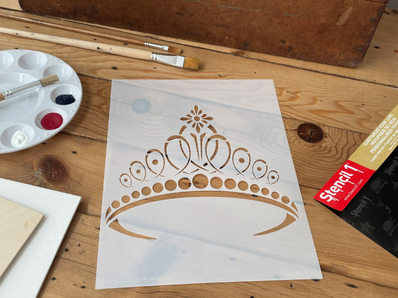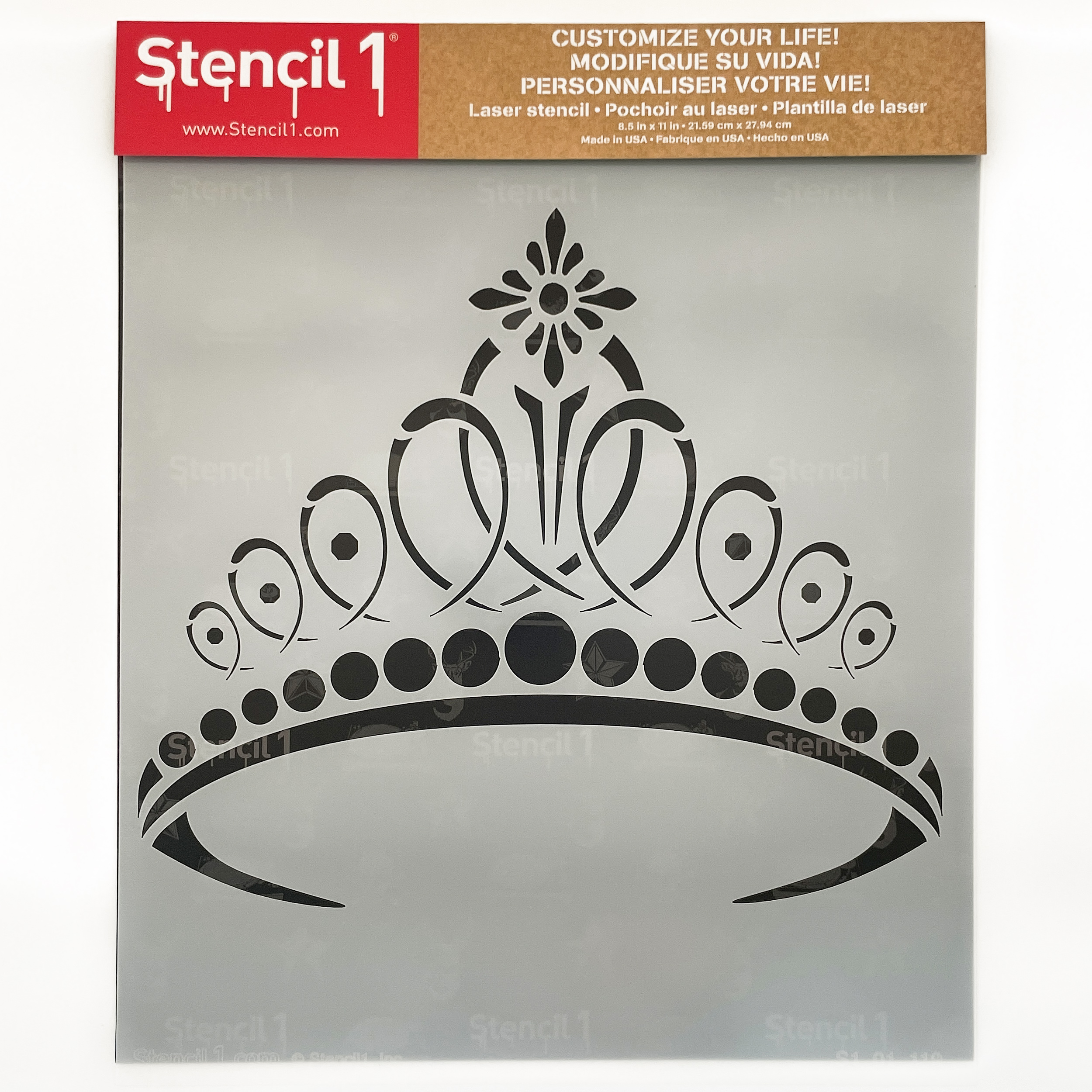 This Stencil1 Tiara stencil is great for many surfaces. Layer with another Stencil1 stencil for a more complex design. Made of mylar, this stencil is washable, reusable and compatible with paints, inks, markers, pencils and more. Can be applied to a variety of materials, including wood, paper, fabric, metal, ceramic, concrete and glass. Show us how you create with Stencil1 by tagging #stencil1 for a chance to be featured on Stencil1.com.