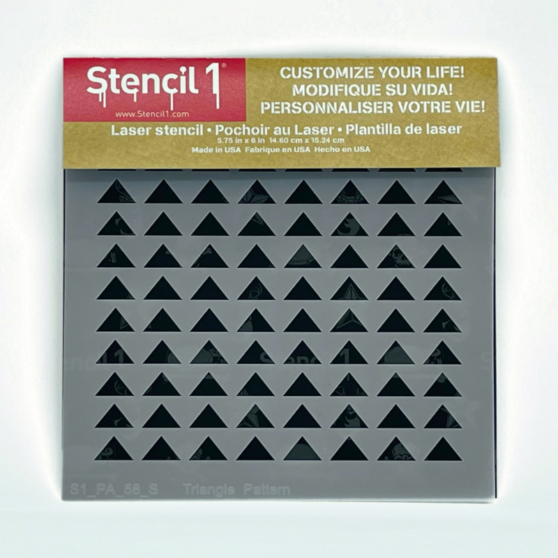 • The Stencil1® Triangle Small Repeat – Stencil 5.75″ x 6″ contains one 5.75″ x 6″ mylar stencil