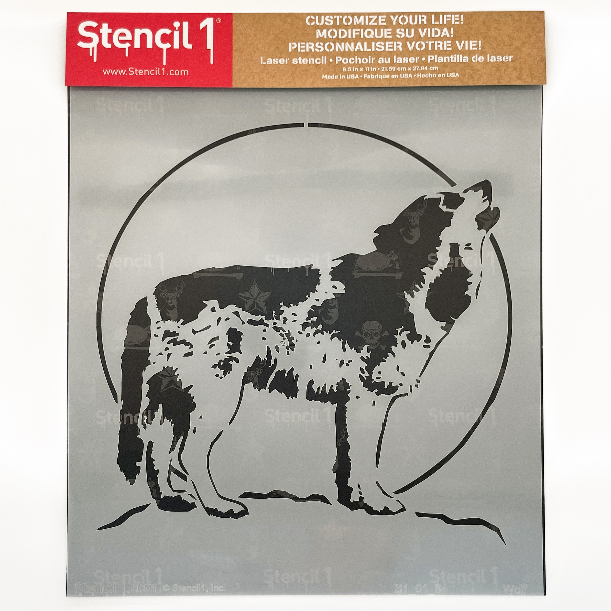 • The Stencil1® Wolf – Stencil 8.5″ x 11″ contains one 8.5″ x 11″ mylar stencil