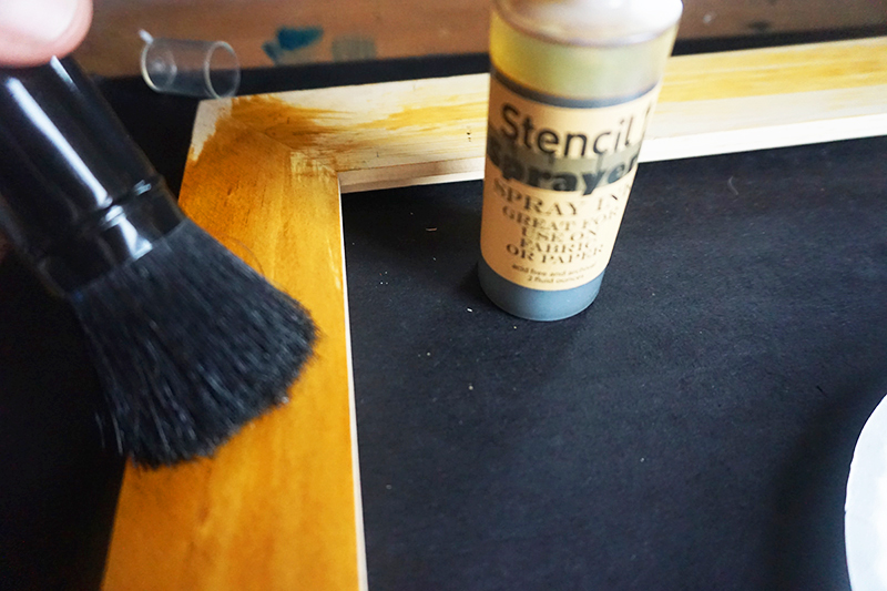 First, stain your frame with a Stencil1 Sprayer. This will give the frame a nice, pigmented finish. Here, we’re using the color, Tan. Brush the ink along the frame until all sides are evenly coated.