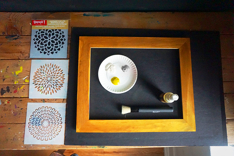 Things you will need: A frame, Stencil1 Sprayers, Stencil1 Small Single Image Stencils, brushes, and paint.