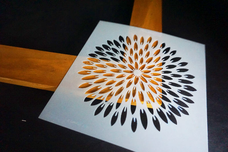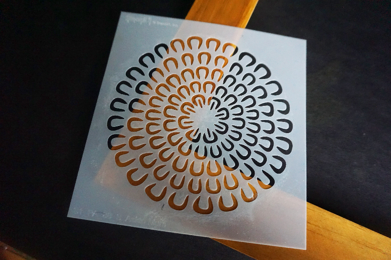 Next, grab another stencil. Here, we are using the Exotic Mum stencil, and repeat!