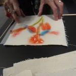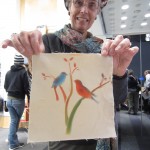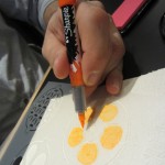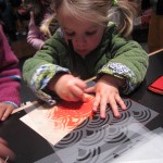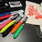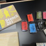 In 1995, I interned at the SFMOMA. The museum was just built and I color corrected images in their digital lab among other things. I was thrilled just to be a part of the museum! Well, I had a new thrilling time at the SFMOMA when I did a book signing and demo/DIY table!  I basically let people from age 3 to 75 try out some Stencil1 stencils from Stencil 201 and they seemed to really enjoy it! We used Clearsnap’s COLORBOX Pigment Ink Pads to stencil wooden postcards and Stained by Sharpie fabric markers to stencil canvas patches.  Here’s a few images from the event. Thank you SFMOMA and those who attended, great job!