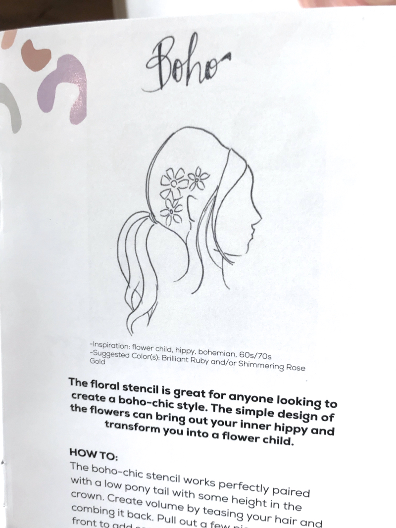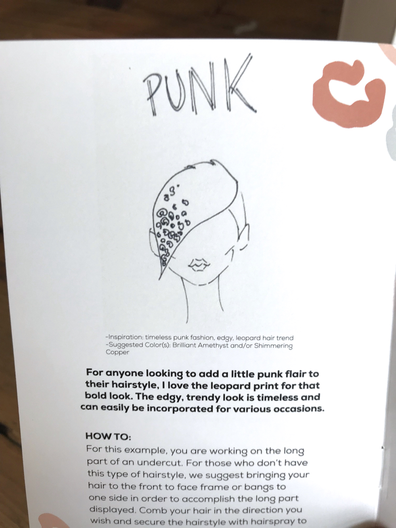 Stencil1 was approached by a marketing firm who was working with Clairol on promoting their Color Crave product, a color paste you can temporarily chang your hair color with.  They wanted to create a limited edition custom kit that included 5 of our stencil designs. We of course said YES! The hair artist also in the mix was the very talented Janine Ker (Instagram :  Janine_Ker_Hair) and we saw what Janine could do in the past with our stencils, so it was a DOUBLE YES.  Here’s what the kit looked like, who wants Clairol to make these available for sale?Â
