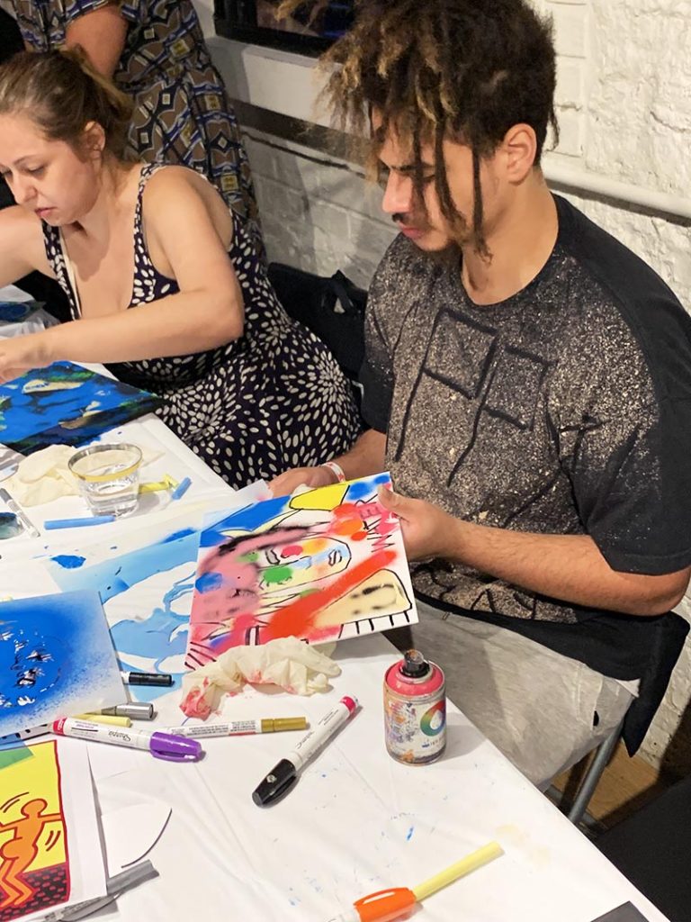 For some spooky decor, look no further, learn how to create these monster portraits for unique, one-of-a-kind Halloween decor. I sat outside with a cocktail at my favorite Brooklyn bar and taco truck for this one…Start by painting these oval canvases black. I found them at Artist and Craftsman and they are made by Fredrix....