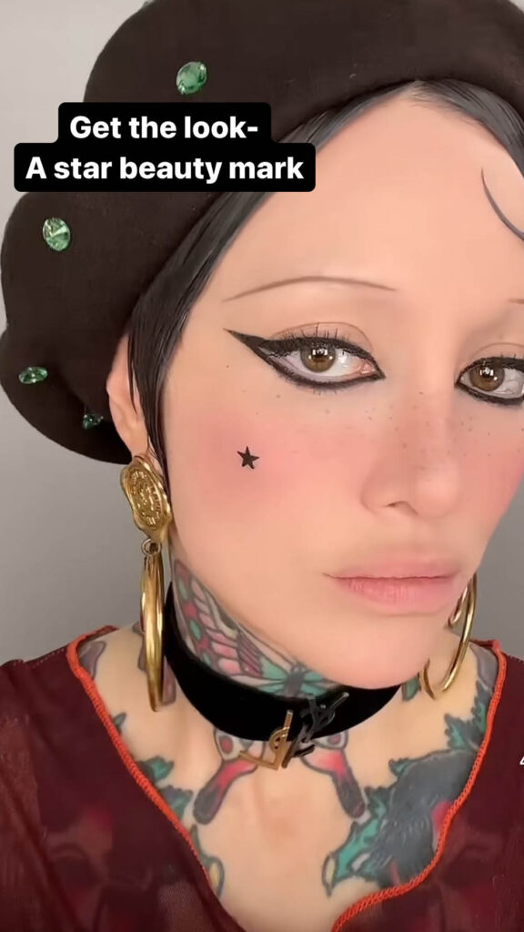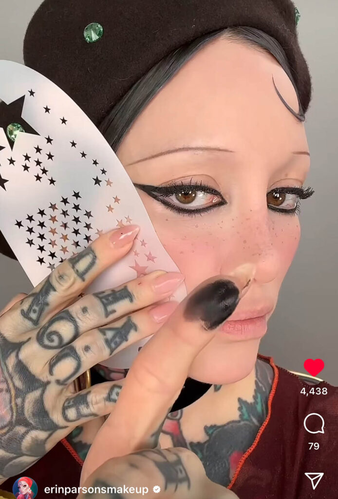 We first started following Erin Parsons last year and really can not get enough of her posts. Why? Well, she’s so damn cool and because she’s a detective, a beauty historian, a fact checker and a super talented being. In her posts she explores the history of makeup and perfume as well as gives wonderful tips on how to apply looks. Well, we decided to sent Erin some of our Stencil1FX makeup stencils as she herself wears beautiful beauty marks of hearts, moons and stars so thought she might like our stencil motifs. Turns out she did and featured our Star Witness on her social. Thank you Erin, you’re one cool lady!