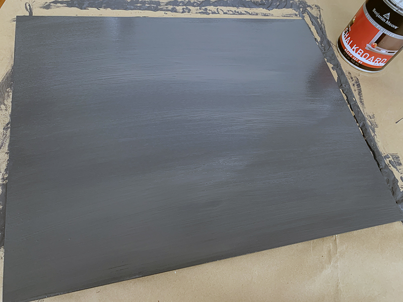 Start painting with your chalkboard paint, brushing three even coats. You can also use a roller.