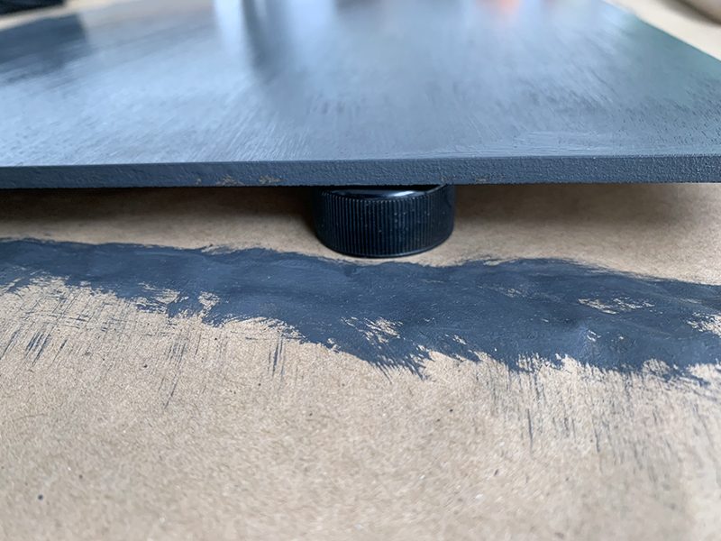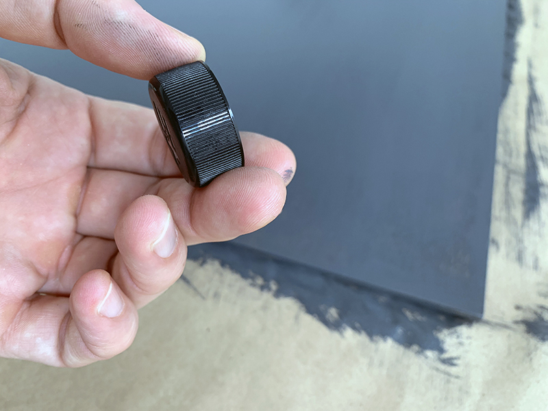 Simply place the cap under the piece of wood. Let board dry before stenciling.