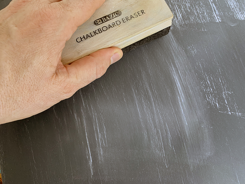 Then erase the chalk to start using your chalkboard. The board will take on a cloudier look.