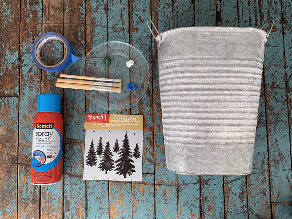 This Winter, I think we all want to cozy up and stay creative. Here’s a DIY that will uplift your home with some holiday decor, a stenciled tin pail customized for the holidays!