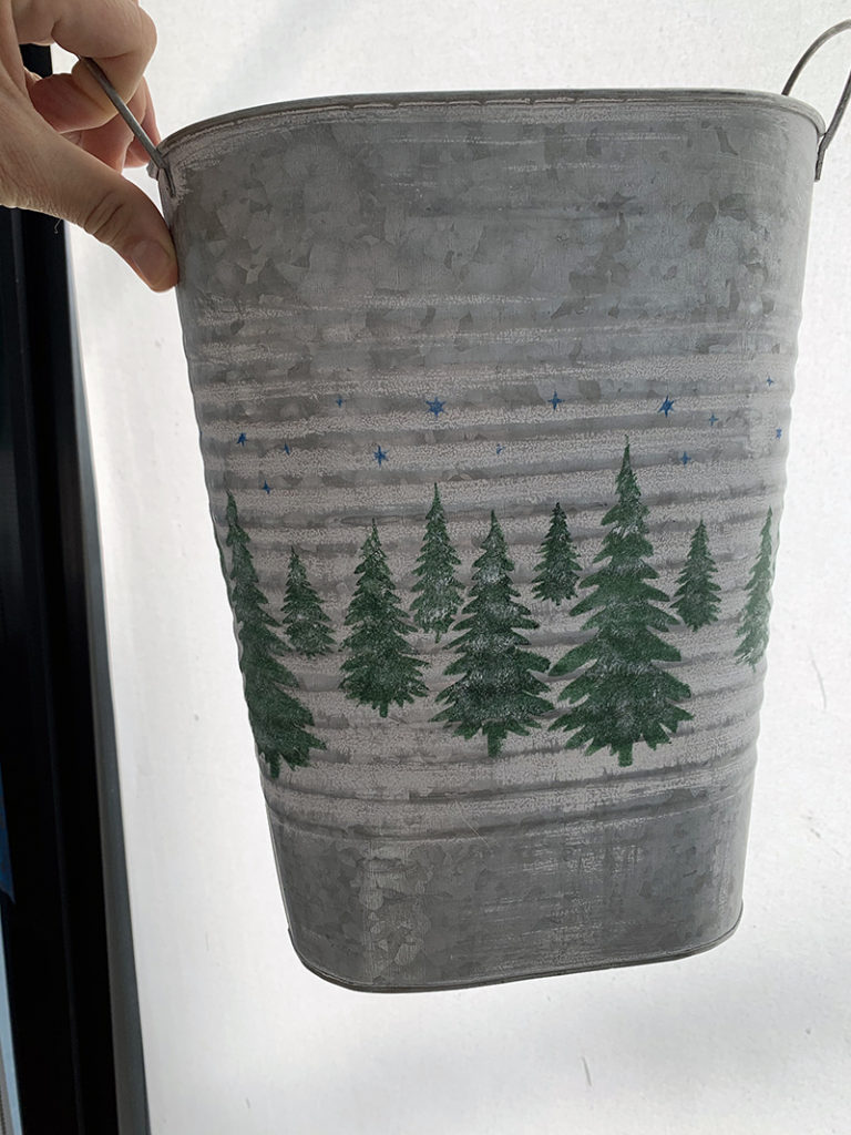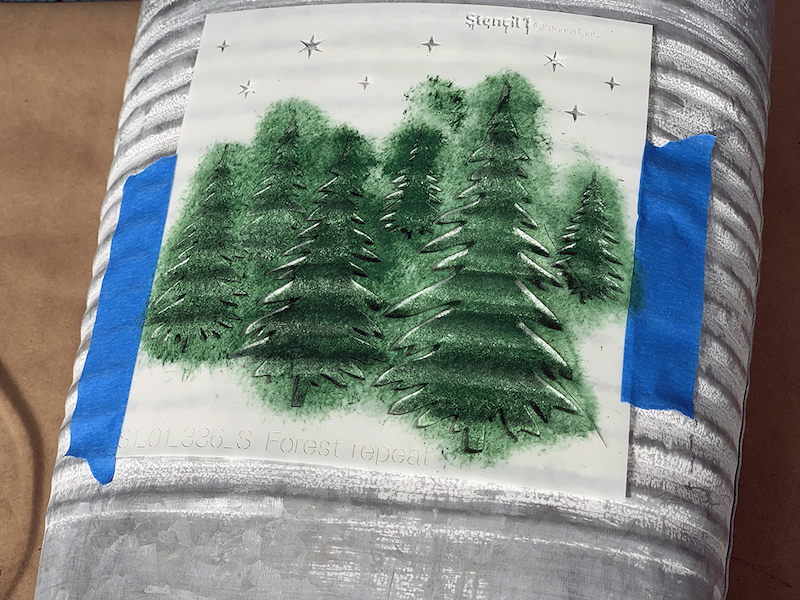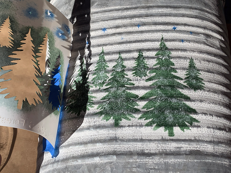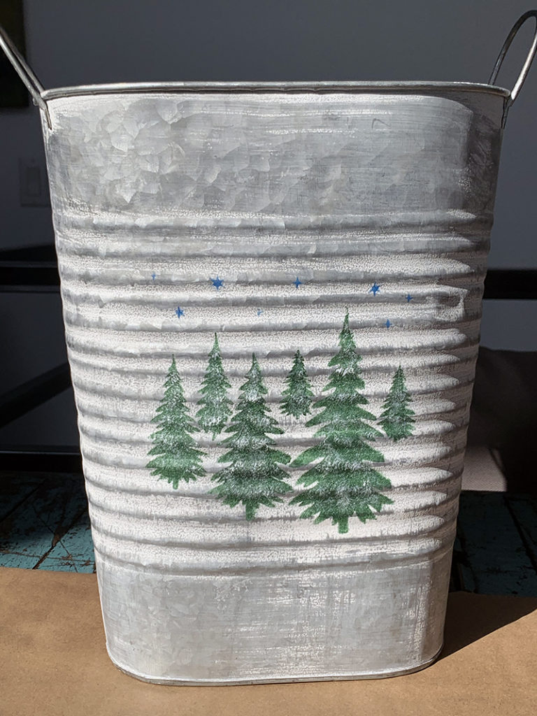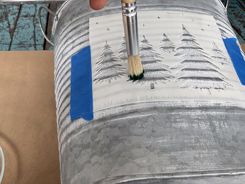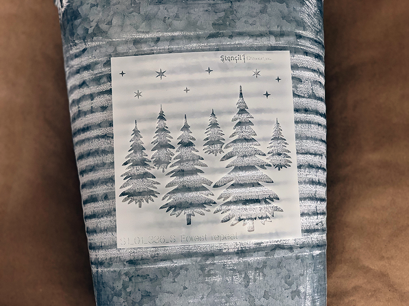 The Forest Repeat stencil can wrap around the pail beautifully so every angle of this centerpiece looks festive.