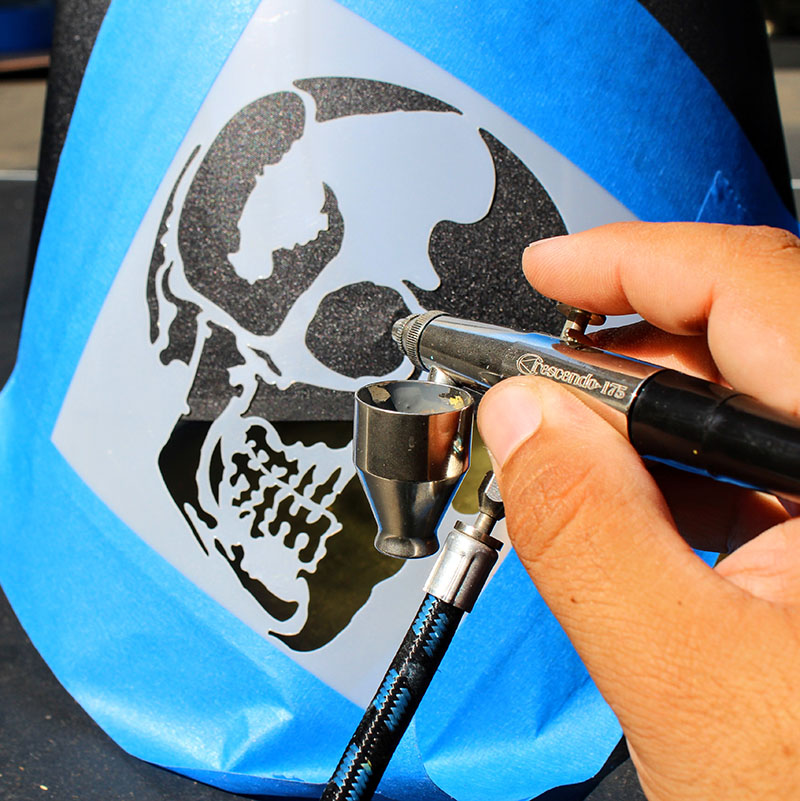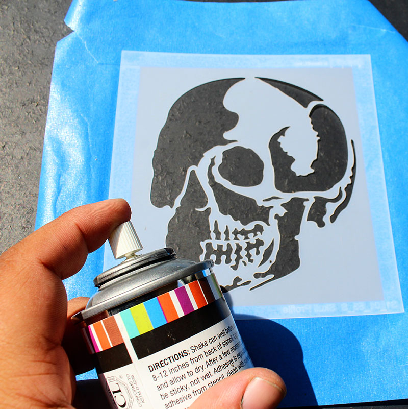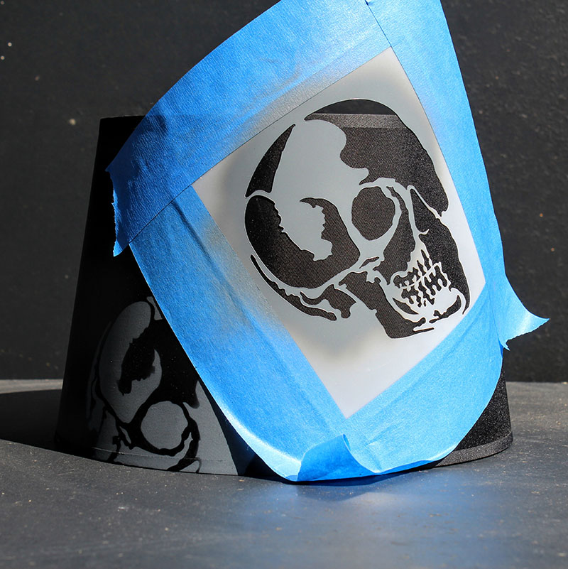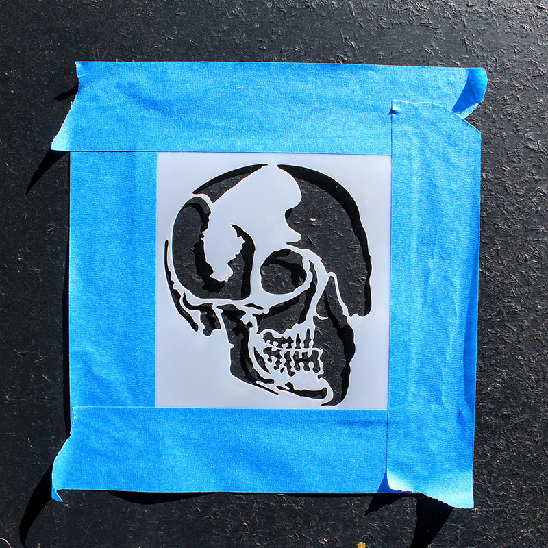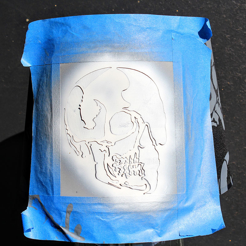 Reposition and paint in a new spot, make sure to let skulls dry between repositioning. Also reapply stencil adhesive to the back of the stencil as needed.