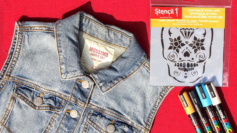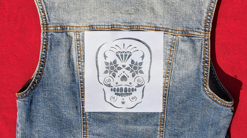 You’re all done and ready to rock your cool new sugar skull vest thanks to your pals over at Stencil1.
