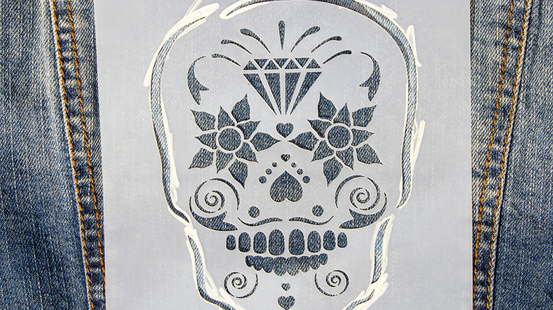 With Dia de Los Muertos fast approaching, now is the perfect time to customize some clothing with a Stencil1 Sugar Skull stencil.