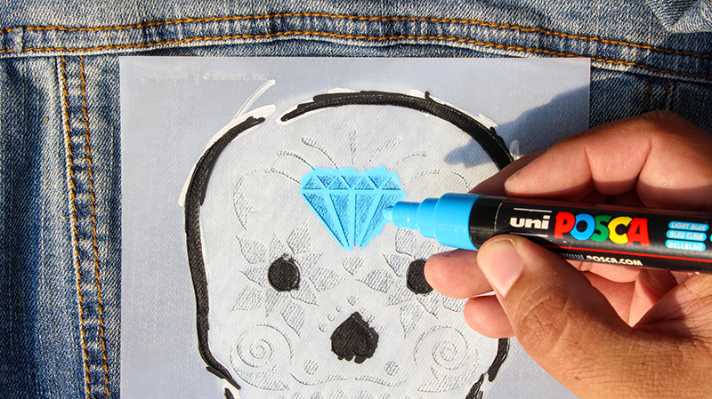 At this point, you can use your Poscas to color in the remainder of the stencil to your liking.