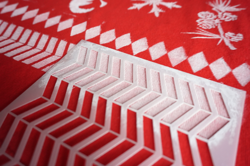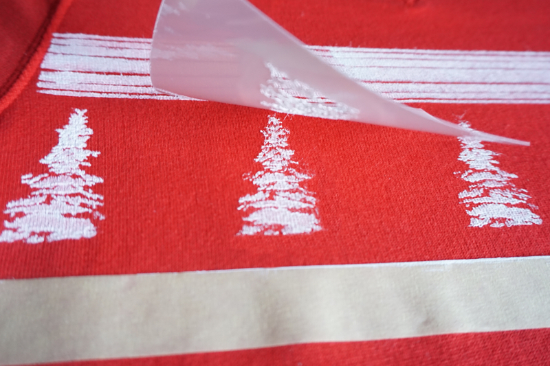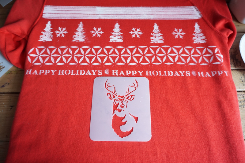Finally, we finished off the sweatshirt using the Chevron Repeat Pattern stencil.
