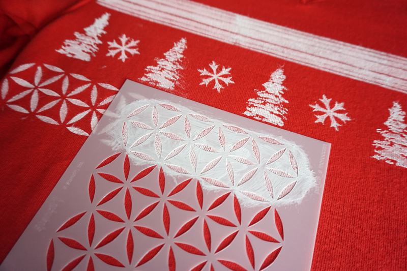 Step 7. Continue to paint the sweatshirt alternating between different designs and different patterns. Here, we used the Moroccan Repeat Pattern stencil.