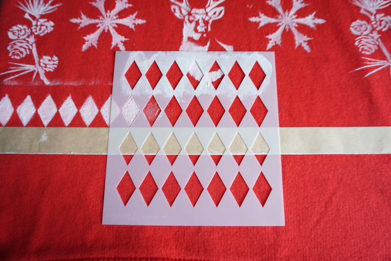 Step 5. Continue to move the stencil make the design repetitious all across the sweater.