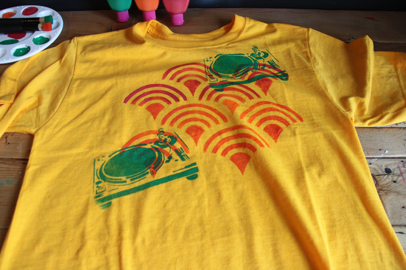 Stenciling t-shirts – why just stencil an image on to a shirt when you can also add some pattern. try it!