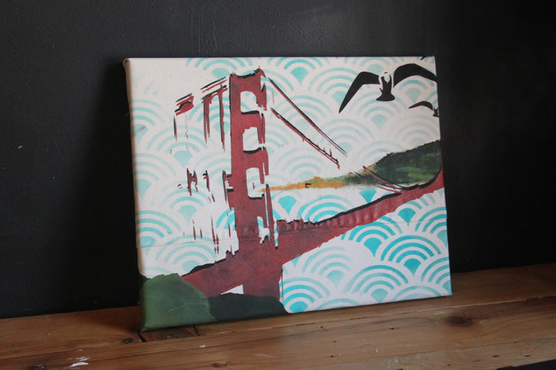 Add pattern to your paintings. I made these painting for the Gap and the canvas is their khaki pants turned into flat canvases!