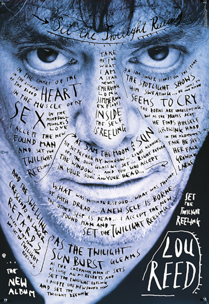As a graphic designer, the most impressive use of type on a person’s face that shook me back in my studies was Stefan Sagmeister’s album cover design for Set the Twilight Reeling by Lou Reed. He wrote on the print, lot on Lou’s face but wouldn’t this be a great look to re-create with makeup?