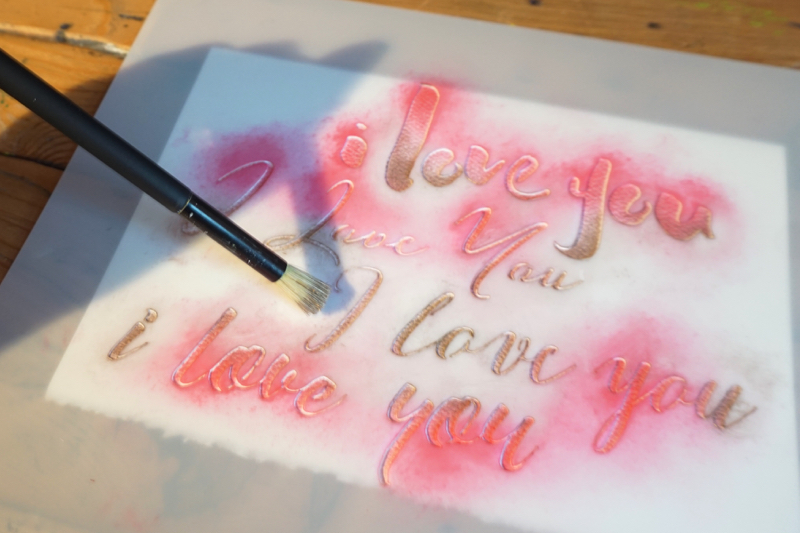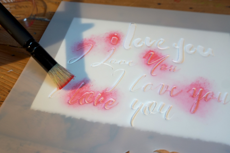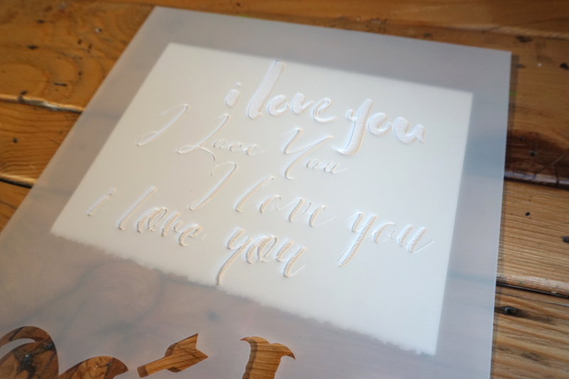 Grab your stencil. The Stencil1 Valentine’s Stencil 3-Pack has 3 different designs for you to choose from. Choose 1, or 2, or all 3! Here, we’re using the “I love you” stencil.