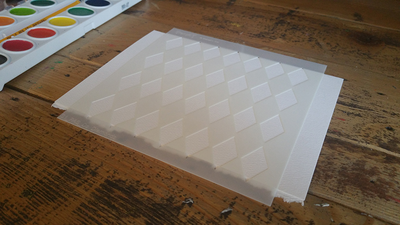 Things you will need: Stencil1 Diamond Repeat Pattern & Butterfly stencil, blank envelope and card, paintbrushes, paper towels, and a watercolor set. We wanted to use a more readily available watercolor set, so we chose Crayola’s Washable Watercolor set!