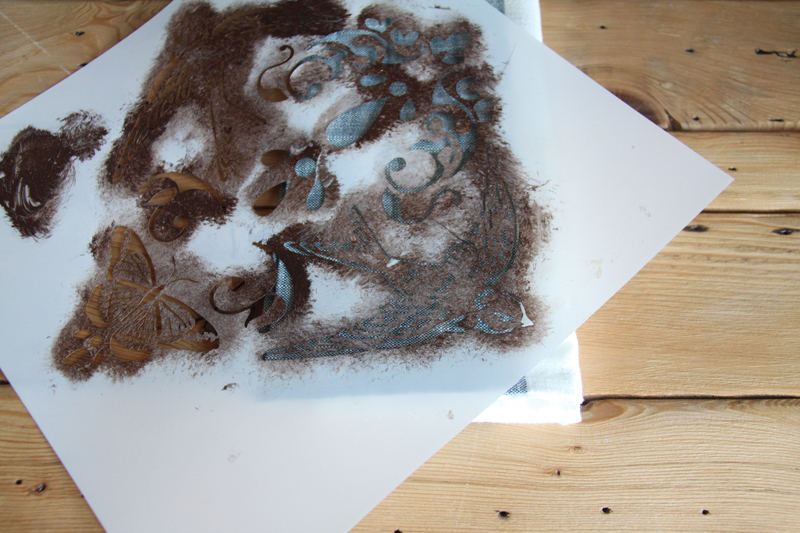 Step 5: Lift the stencil carefully and allow the paint to dry to touch.