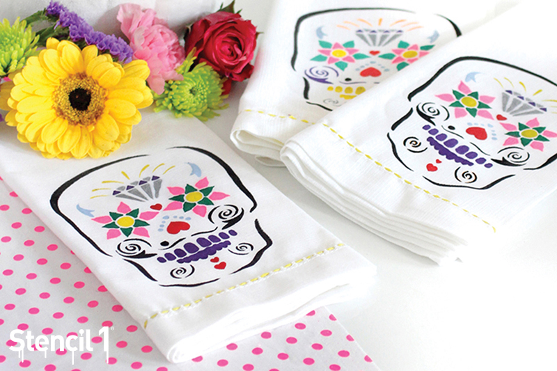 Sugar Skull stencil napkins by I Spy DIY